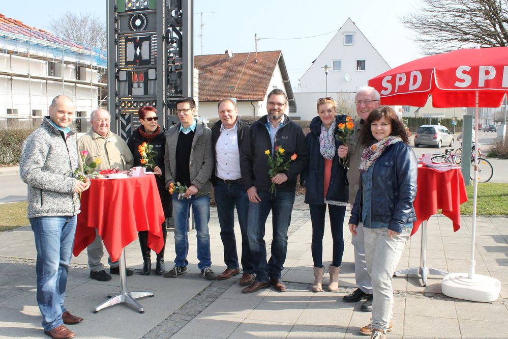 Zur Erinnerung an den Kampf um Gleichberechtigung und Frauenwahlrecht wünschten die SPD Kandidaten an diesem sonnigen Samstag vormittag allen einen schönen Tag und warben für die anstehende Kommunalwahl am 16. März