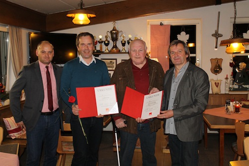 Unser SPD Bürgermeister Martin Paninka sprach in einer kleinen Dankesrede die Glückwünsche des Ortsvereins aus und überreichte zusammen mit dem Ortsvorsitzendem Christian Scholz eine Urkunde, unterschrieben vom Parteivorsitzendem Sigmar Gabriel, dem Landesvorsitzendem Florian Pronold und dem Ortsvorsitzendem Christian Scholz, ebenso eine Anstecknadel der SPD und einem kleinem Präsent des Ortsvereins.