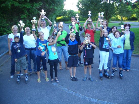 Rund zwanzig Skaterinnen und Skater fanden sich wieder beim Ferienprogramm der SPD am Verkehrsübungsplatz an der Schule zu einem 8 km Rundkurs und anschließend bei den Speed-Rennen ein.