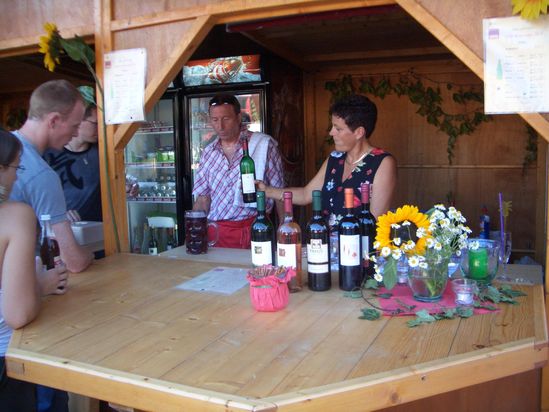 Sie finden unseren traditionellen Wein- und Rahmfleckstand wie immer zwischen Rathaus und Schmutterhalle.