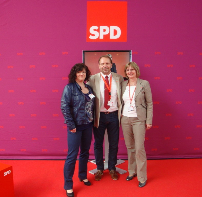 Im Vorbereich des Plenum treffen die Genossen so manche Parteigrößen, die sie bis dato nur aus dem Fernsehen kannten. Umso überraschter waren die Genossen, dass die Spitzenpolitiker Politiker zum „Anfassen“ waren. Schnell waren dadurch die ersten Hemmungen überwunden und Frank-Walter Steinmeier plauderte völlig ungezwungen mit den Bäumenheimer Genossen. Nach weiteren Gesprächen und dem einen oder anderen Erinnerungsfoto ging es dann Richtung Plenum.